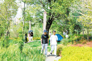 環(huán)湖南路車道、騎行健步道的外側(cè)還有數(shù)米寬的人行道,設(shè)有盲道,功能齊全,能夠滿足運(yùn)動(dòng)、觀景的需要。
