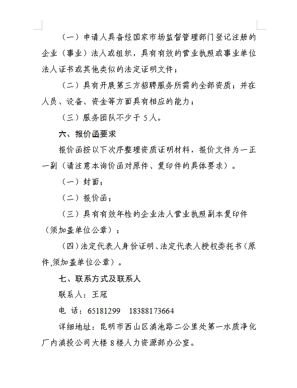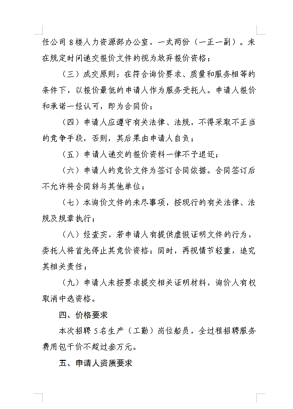 首頁>信息公開>昆明滇池投資有限責任公司選聘船員公開招聘服務(wù)單位詢價函